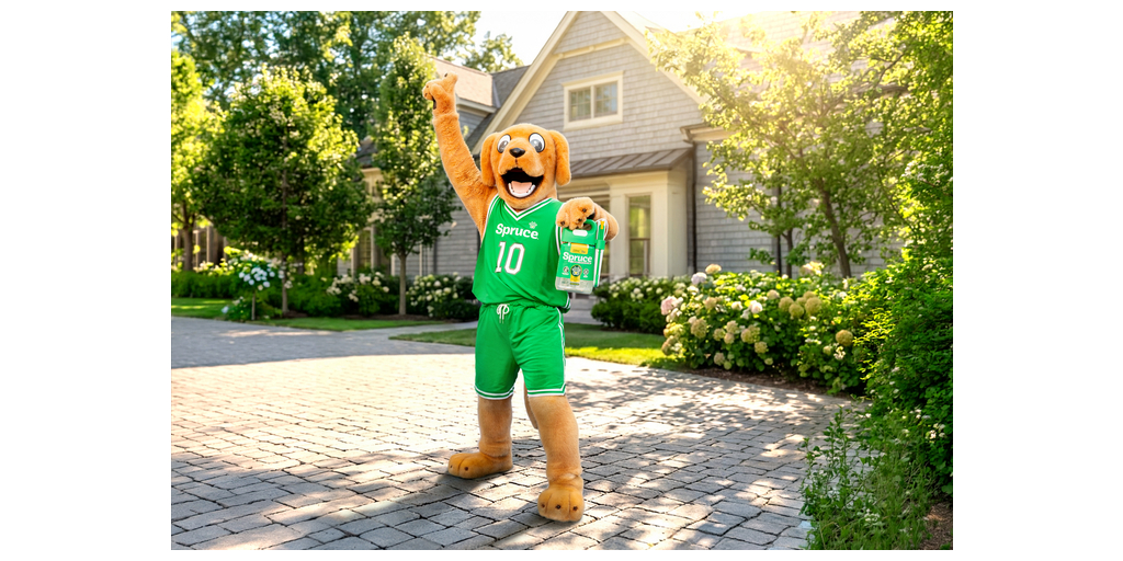 Bruce the Spruce Dog makes his debut this March with a slam-dunk campaign proving that Spruce is safe for use around people, pets AND mascots when used as directed. Four new creative assets from Spruce will showcase Bruce joining four beloved college basketball dog mascots including Fresno State’s “TimeOut”, Gonzaga’s “Spike the Bulldog”, University of Tennessee’s “Smokey” and UCONN’s “Jonathan the Husky” to reinforce Spruce is letting the dogs out! He will also draft an elite roster of influencers to join the Spruce All Star Team, each ready to show off their best “plays” for a winning yard!